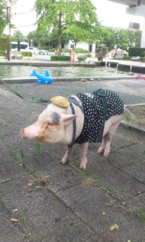 自分は街中で飼い犬ならぬ飼い豚を見た事が無かったので 「そんな事ってあるんやなー!」と思っていたのですが