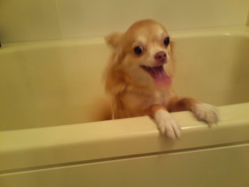 ブログで登場する我が家の愛犬ですがお風呂が大嫌いです。 一緒にお風呂にはいるのですが普段はほとんど吠えないのに吠えまくってひっかかれて大変です。 先日はワクチンを打ちに動物病院へいったら去年より1㎏太っていて 最近はおやつをあげずにダイエットさせています。 たった1㎏でも小型犬には負担になるそうなので来年は元通りになるように 散歩もさせてダイエットできるようにします