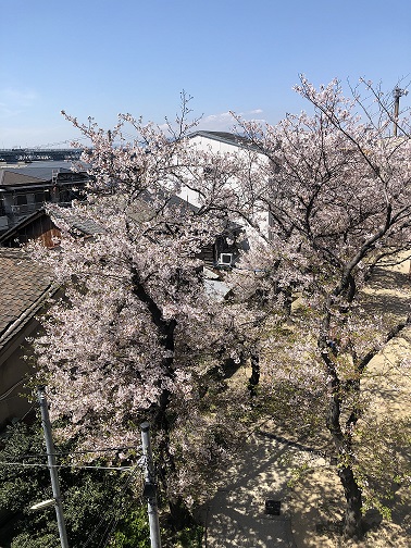 隣の公園にふと目をやると…桜が満開♪♪