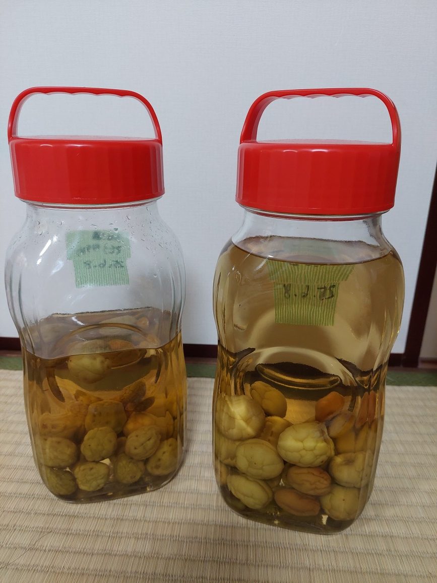 こんにちは 安治川工場 池信です今年 6月に 梅をたくさん頂いたので 梅酒と梅シロップを作ろうと つけてみました。リカー(果実酒用 焼酎)を沢山 用意し過ぎて シロップの分も 梅酒になってしまいました。もうそろそろ 飲み頃なので 楽しみです。次は 梅酒の梅で ジャムを作ってみようと思っています。うまく出来るか? わかりませんが…