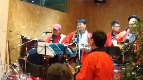 還暦にちなんでメンバー全員赤いハッピを着て演奏させていただきました。