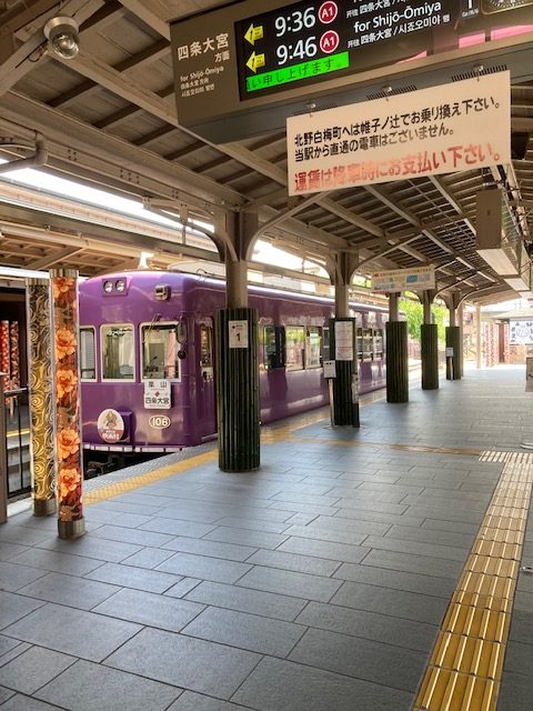 そんな時よく嵐電に乗ります、京都の町の中を